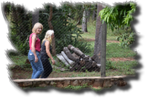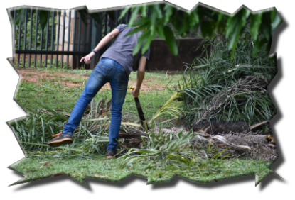 und auch die Bäume, die gefährlich in die Kabel wuchsen, zu fällen bzw. zu kürzen. Wie ein Äffchen kletterte er auf die Bäume, um das Seil herumzuschlingen, mit dem die Fallrichtung bestimmt wurde. Außerdem wollten wir auch noch einige Stellen mit Kuhgras, welches hier anwuchs, auswechseln lassen. Denn das Kuhgras wächst wie toll und dürfte alle zwei Wochen gemäht werden. Tim kam mit einem kleinen LKW angefahren und hatte das Gras in "Fliesenform" dabei. Also wurde das unerwünschte Gras entfernt und gegen feines getauscht.