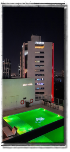 Da unsere erneute Urlaubsreise vor der Tür stand, wollten wir das Klappern unter dem Auto prüfen lassen, nicht, dass wir in Encarnacion stehen und das Auto ist kaputt. Ich machte einen Termin aus und um nicht früh um 4 Uhr aufstehen zu müssen, planten wir diesmal eine Übernachtung im Hotel. Wir suchten uns das "Dazzler" aus. Es liegt genau gegenüber vom Shopping del Sol. Wir bekamen ein Zimmer im 11. Stock. Im 15. Stock gibt es einen Poolbereich mit einer Bar. Dort waren wir am Abend noch auf ein Bierchen. Anschließend gab es ein Wannenbad. Seit fast sieben Jahren wieder mal. Wie habe ich es genossen.