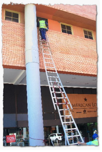 Eine übergroße Stehleiter gebastelt aus 4 kleineren Leitern! So etwas