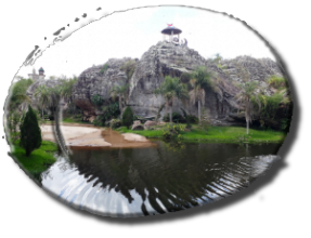 Felsgestein, fast einer Mondlandschaft gleich, um dann am Eingangsportal