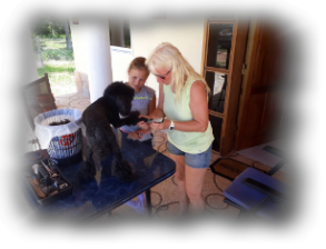 Mal wieder an der Zeit, dass die Püdelchen geschoren wurden. Seit einer Weile bekommen sie ja schon eine schicke Kurzhaarfrisur. Salia half tüchtig mit. Alles was Tiere betrifft, findet sie einfach nur toll.