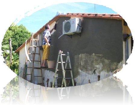 Unsere Vermieterin lässt uns dabei absolut freie Hand. Reiner hat mit seinem Schlafzimmer angefangen. Die Decke wurde mit einer neuen Farbe versehen. Die Balken sind nun in einem hellen Grauton gestrichen und die Zwischenräume wurden lasiert. Sieht nun toll aus. Die Wände blieben im gleichen Farbton, wurden nur aufgefrischt. Und einen neuen Kleiderschrank hat er auch noch bekommen. Drei Innentüren sind nun auch schon aufgehübscht und nicht mehr in dem altbackenen dunkelbraun, sondern in einem frischen Cremeton. Dadurch wirken die Räume nun direkt größer. An der hinteren Außenwand wurden ein paar Mauer-Riss mit einem Gewebe überspachtelt. In Ermangelung von Armierungsputz haben wir einfach einen Flexkleber für Fliesen genommen. Als Gewebe dient ein Fliegengitter.