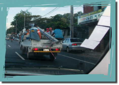 Immer wieder lustig. Inzwischen schon ein gewohnter Anblick.......7 Leute auf einer Ladefläche