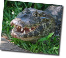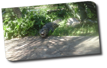 freilaufenden Kaimane. Unser Weg führte genau an deren See vorbei und