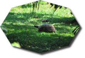 Überall sieht man freilaufende Tiere. Riesen Schildkröten und Echsen.