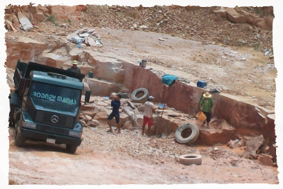 aus dem Fels herausgeklopft und ebenso per Hand auf den LKW geworfen. Es