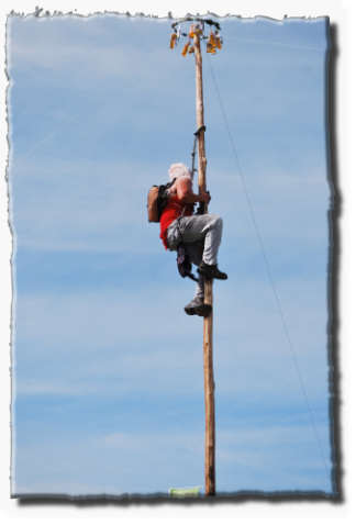 ca. 5 Meter hoher Stamm galt es zu erklimmen. Der war natürlich mit