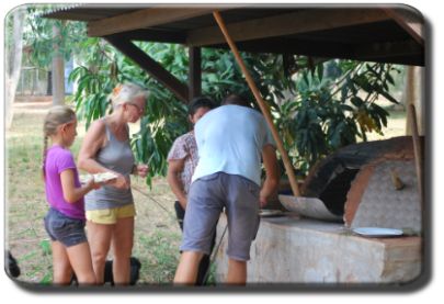 An einem Samstag nachmittag verabredeten wir uns mit unseren ehemaligen Nachbarn von der Estancia zum Pizza backen im unserem Tatagua. Das ist ein igluähnlich gemauerter Ofen im Garten, der mit Holz angefeuert wird und wenn er ausreichend heiß ist, kehrt man die Holzkohle heraus und kann darin backen. Wir hatten einen Mordsspaß, da ja keiner wusste, wie das so genau funktioniert. Aber es wurde alles gut und die Pizza war lecker.
