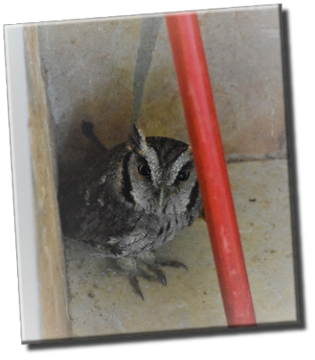 Beinahe hätte ich noch unsere kleine Eule vergessen. Sie verirrte sich auf unsere hintere Terrasse und verweilte dort den halben Tag. Gott sei Dank haen sie die Hunde nicht mitbekommen.