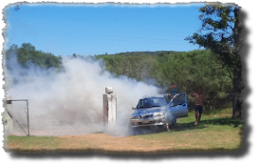 Dominik startete seinen Wagen und es kam eine mörderische Qualmwolke aus dem Auspuff, es wollte gar nicht mehr aufhören. Dominik stand neben dem Auto, den Zündschlüssel in der Hand und meinte nur, ich mach doch gar nix. Puh...nicht schön. Also rief er die Versicherung an, dass die einen Abschleppdienst schicken. So musste er bei Procole warten und Joachim lud die Familie in sein Auto. Und nach dem Kaffee nahmen wir alle mit. Dominik fand sich auch irgendwann wieder ein.