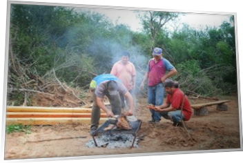 Am 8. Mai machten wir uns auf den Weg in den Chaco. Wir, das sind: Außer uns beiden, Mirtha mit Ernst, Rene, Harry (Mirtha´s Bruder), der Zimmermann und sein Mitarbeiter. Der Sinn der Reise war, auf dem Grundstück, das unsere Vermieter dort haben, die zugewachsenen Wege wieder befahrbar zu machen, teilweise zu roden, um dann anzupflanzen und irgendetwas Sinnvolles aus dem ewigen Brachland zu machen.