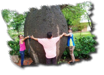 Hier steht auch ein riesiger Flaschenbaum. 6 Leute braucht man, um ihn zu umarmen.