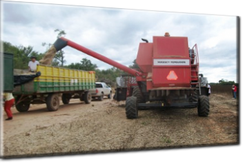 Sesam-Ernte. Der weiße Sesam wurde mit der Maschine geerntet.
