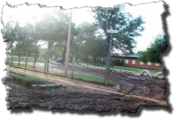 Gegen 14.30 Uhr erreichten wir unser Hotel "Touring Club", das noch etwa 18 Km von Filadelfia entfernt ist. Da es 2 Tage lang geregnet hatte, war das gesamte Außengelände vom Hotel eine einzige Matsche. Ich wusste nicht, wie ich mit den Hunden irgendwie laufen sollte. Leider war es das einzige Hotel, das das Mitbringen von Hunden erlaubte.