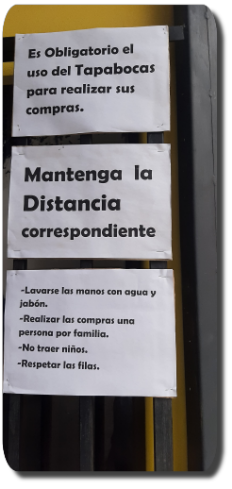 3. Schild: Wasche deine Hände mit Wasser und Seife, Nur eine Person pro Haushalt zum Einkaufen, bringe keine Kinder mit, respektiere die Reihe.