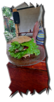 Unbedingt stand der Einkauf beim Metzger Hagen in Piribebuy auf dem Plan, denn der hatte ganz groß Coburger Bratwürste angeboten. Das durften wir uns nicht entgehen lassen. Ich muss sagen, es war ein echter Hochgenuss. Und die geforderten 31 cm waren auch vorhanden. Reiner schob sich noch einen Burger hinterher.